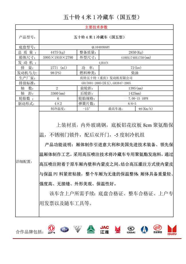 五十鈴4米1冷藏車