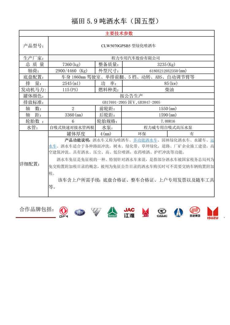 福田國五5.9噸灑水車